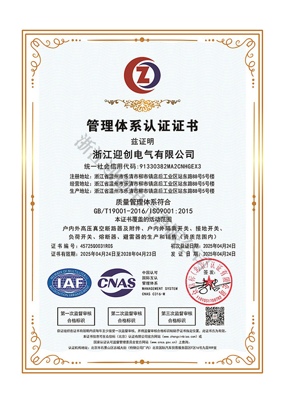 质量管理体系认证证书